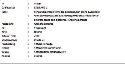 Limanto, Angelina (2010) Pengaruh periklan terhadap pembentukan brand awareness serta dampaknya pada keputusan pembelian produk klien PT. octovate brand asia di Jakarta. Skripsi thesis, Universitas Tarumanagara.