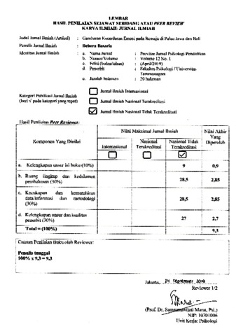 Debora, Basaria Peer Review Gambaran Kecerdasan Emosi pada Remaja di Pulau Jawa dan Bali. Provitae, Jurnal Psikologi Pendidikan.