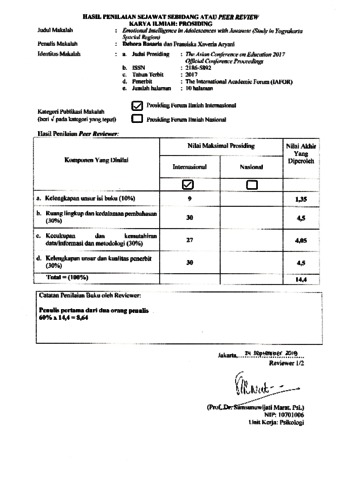 Debora, Basaria Peer Review Emotional Intelligence in Adolescences with Javanese (Study in Yogyakarta Special Region). The Asian Conference on Education 2017 Official Conference Proceedings.
