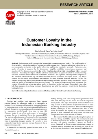 Keni Keni, Keni (2015) Dokumen B.8 Keni, Hasnah Haron, Ishak Ismail. Customer Loyalty in the Indonesian Banking Industry, 21 (4). pp. 838-842. ISSN 1936-6612