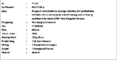 Hartono, Vina Margarita (2010) Pengaruh rasio likuiditas, leverage, aktivitas, dan profitabilitas terhadap return saham pada industri barang konsumsi yang terdaftar di bei tahun 2008. Skripsi thesis, Universitas Tarumanagara.