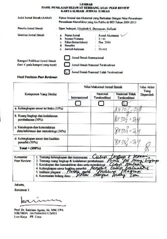 Elizabeth, Elizabeth and Sufiyati, Review (2016) Reviewer Jurnal B.13 Djeni Indrajati, Elizabeth S. Dermawan, Sufiyati. Faktor Intenal dan Eksternal yang Berkaitan Dengan Nilai Perusahaan-Perusahaan Manufaktur yang Go Public di BEI Tahun 2009-2013, 16 (2). pp. 73-142. ISSN 1411-691X