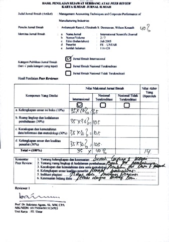 Ardiansyah, Ardiansyah and Elizabeth, Elizabeth and WILSON, WILSON (2017) Reviewer Jurnal B.14 Ardiansyah Rasyid, Elizabeth S. Dermawan, Wilson Kosasih. Management Accounting Techniques and Corporate Performance of Manufacturing Industries, 7 (2). pp. 116-124. ISSN 2077-429X (printed version), 2077-4303 (online version)