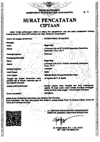 Mega, Waty Material Waste Konstruksi Jalan. In: Material Waste. Universitas Tarumanagara.
