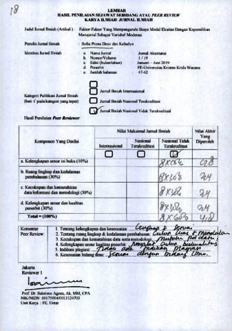 Sofia Prima Dewi, Review and Kelselyn, Review (2019) Reviewer Jurnal B.18 Sofia Prima Dewi dan Kelselyn. Faktor-Faktor Yang Mempengaruhi Biaya Modal Ekuitas Dengan Kepemilikan Manajerial Sebagai Variabel Moderasi, 19 (1). pp. 47-62. ISSN 1411-691X