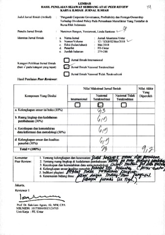 Nurainun Bangun, Review and Yuniarwati, review and Linda santioso, Review (2018) Reviewer Jurnal B.14 Nurainun Bangun, Yuniarwati, Linda Santioso. "Pengaruh Corporate Governance, Profitability dan Foreign Ownership Terhadap Dividend Policy Pada Perusahaan Manufaktur Yang Terdaftar di Bursa Efek Indonesia", XXII (12). pp. 279-288. ISSN 1410-3591
