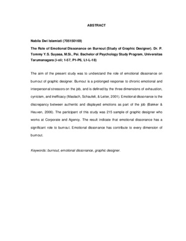 Dwi Islamiati, Nabila (2020) Peran Disonansi Emosi Terhadap Burnout (Studi pada Desainer Grafis). Skripsi thesis, Universitas Tarumanagara.