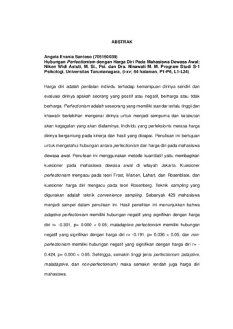 Evania Santoso, Angela (2020) HUBUNGAN PERFECTIONISM DENGAN HARGA DIRI PADA MAHASISWA DEWASA AWAL. Skripsi thesis, Universitas Tarumanagara.