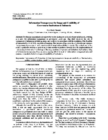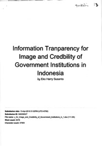 Susanto, Eko Harry (2018) Information Transparency for Image and Credibility of Government Institutions in Indinesia. Social Sciences, 13 (2). pp. 287-295. ISSN 1818-5800, 1993-6125