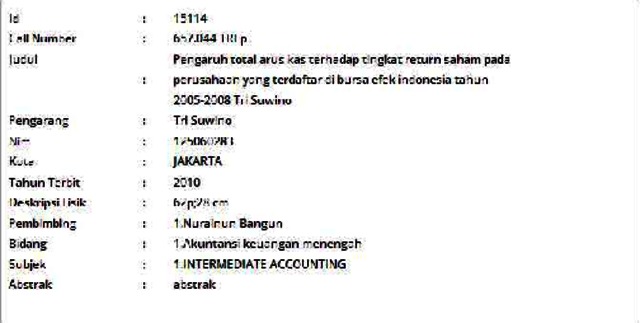 Suwino, Tri (2010) Pengaruh total arus kas terhadap tingkat return saham pada perusahaan yang terdaftar di bursa efek indonesia tahun 2005-2008. Skripsi thesis, Universitas Tarumanagara.