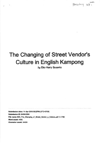 Azeharie, Suzy and Susanto, Eko Harry (2016) The Changing of Street Vendor's Culture in English Kampiong. International Conference on Transformation in Communication (ICoTIC).