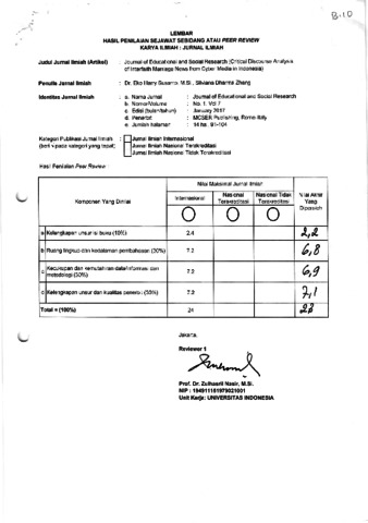 Susanto, Eko Harry Peer Review Critical Discourse Analysis of Interfaith Marriage News from Cyber Media in Indonesia. Journal of Educational and Social Research.