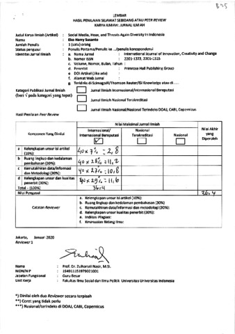 Susanto, Eko Harry Peer Review Social Media, Hoax, and Threats Again Diversity In Indonesiast. International Journal of Innovation, Creativity and Change.