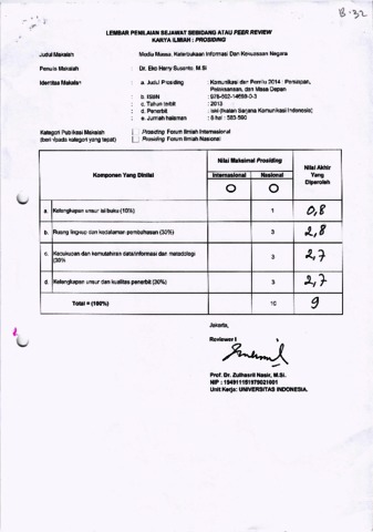 Susanto, Eko Harry Peer Review Media Massa, Keterbukaan Informasi Dan Kekuasaan Negara". Komunikasi @2014 Komunikasi dan Pemilihan Umum 2014: Persiapan, Pelaksanaan, dan Masa Depan.