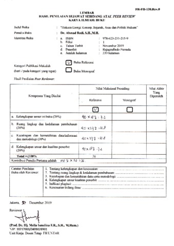 Redi, Ahmad (2019) Peer Review Hukum Energi Konsep, Sejarah, Asas, dan Politik Hukum. Raja Grafindo Persada.