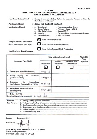 Redi, Ahmad (2017) Peer Review Energy Conservation Policy Reform in Indonesia: Attempt to Trace Its Basic Reason of Change. Faculty Of Law, Tarumanagara University.
