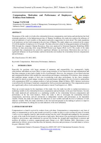 Yanuar, Yanuar Compensation, Motivation and Performance of Employees: Evidence from Indonesia. Compensation, Motivation and Performance of Employees: Evidence from Indonesia.