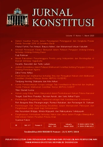 Herning Sitabuana, Tundjung (2020) Positivisme dan Implikasinya Terhadap Ilmu dan Penegakan Hukum Oleh Mahkamah Konstitusi (Analisa Putusan Nomor 46/PUU-XIV/2016). Jurnal Konstitusi - Terakreditasi RISTEKDIKTI 21/E/KPT/2018, 17. pp. 104-129. ISSN 1829-7706
