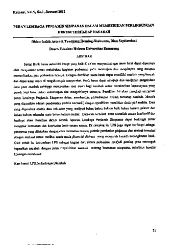 Herning Sitabuana, Tundjung (2012) Peran Lembaga Penjamin Simpanan Dalam Memberikan Perlindungan Hukum Terhadap Nasabah. HUMANI (Hukum dan Masyarkat Madani), 5. pp. 71-80. ISSN 1411-3066