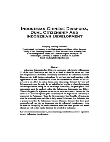Herning Sitabuana, Tundjung (2015) Indonesian Chinese Diaspora, Dual Citizenship and Indonesian Development. Constitutional Review, 1. pp. 50-71. ISSN 2460-0016