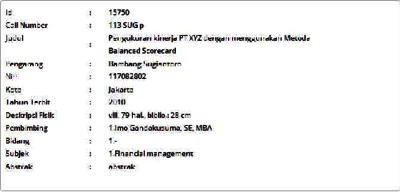 Sugiantoro, Bambang (2010) Pengukuran kinerja PT XYZ dengan menggunakan Metoda Balanced Scorecard. Masters thesis, Universitas Tarumanagara.