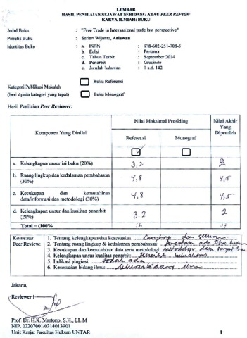 Gunadi, Ariawan (2014) Peer Review Free Trade in Internasional trade law perspective. Grasindo.