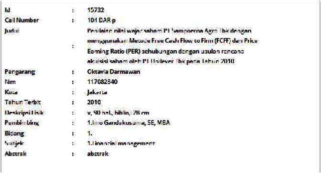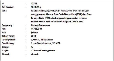 Darmawan, Oktavia (2010) Penilaian nilai wajar saham PT Sampoerna Agro Tbk dengan menggunakan Metode Free Cash Flow to Firm (FCFF) dan Price Earning Ratio (PER) sehubungan dengan usulan rencana akuisisi saham oleh PT Unilever Tbk pada Tahun 2010. Masters thesis, Universitas Tarumanagara.