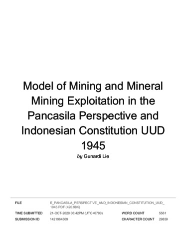 Model of Mining and Mineral Mining Exploitation in the Pancasila Perspective and Indonesian Constitution UUD 1945 (1).pdf Download (2MB) | Preview |
