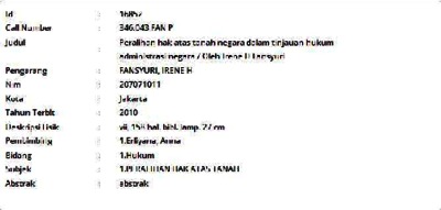 Fansyuri, Irene H (2010) Peralihan hak atas tanah negara dalam tinjauan hukum administrasi negara. Skripsi thesis, Universitas Tarumanagara.