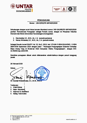 | Uncontrolled Keywords: | Pengunkapan Sukarela; Ketepatan Waktu Pengungkapan; Biaya Utang |