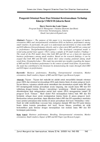 Darwis, Harry and Utama, Louis Pengaruh Orientasi Pasar Dan Orientasi Kewirausahaan Terhadap Kinerja UMKM Di Jakarta Barat. Pengaruh Orientasi Pasar Dan Orientasi Kewirausahaan Terhadap Kinerja UMKM Di Jakarta Barat.
