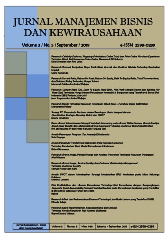 Kesuma JP, Kris Jati and Tunjungsari, Hetty Karunia PERAN BRAND ATTRACTIVENESS SEBAGAI VARIABEL INTERVENING PADA BRAND DISTINCTIVENESS, BRAND PRESTIGE, BRAND SOSIAL BENEFIT, DAN MEMORABLE BRAND EXPERIENCE TERHADAP CUSTOMER BRAND IDENTIFICATION. PERAN BRAND ATTRACTIVENESS SEBAGAI VARIABEL INTERVENING PADA BRAND DISTINCTIVENESS, BRAND PRESTIGE, BRAND SOSIAL BENEFIT, DAN MEMORABLE BRAND EXPERIENCE TERHADAP CUSTOMER BRAND IDENTIFICATION.
