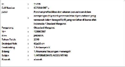 Margaret, Otaviani (2010) Peranan profitabilitas dan ukuran perusahaan dalam mempengaruhi praktik perataan laba di perusahaan yang termasuk dalam kategori lq45 yang terdaftar di bursa efek indonesia. Skripsi thesis, Universitas Tarumanagara.