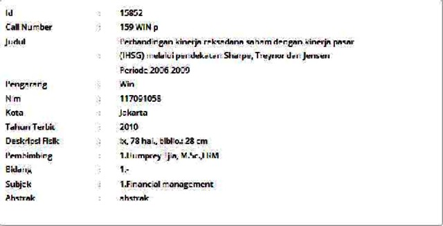 Win, Win (2010) Perbandingan kinerja reksadana saham dengan kinerja pasar (IHSG) melalui pendekatan Sharpe, Treynor dan Jensen Periode 2006-2009. Masters thesis, Universitas Tarumanagara.