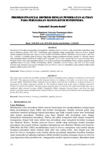 Penelitian ini bertujuan memprediksi kemungkinan terjadinya financial distress pada perusahaan manufaktur yang
