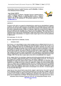 Arifin, Agus Zainul Interactions between Capital Structure and Profitability: Evidence from Indonesia Stock Exchange. Interactions between Capital Structure and Profitability: Evidence from Indonesia Stock Exchange.