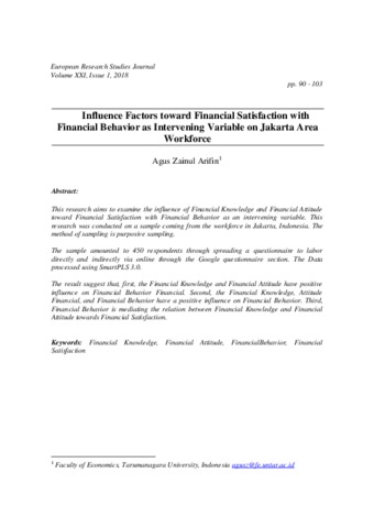 Arifin, Agus Zainul Influence Factors toward Financial Satisfaction with Financial Behavior as Intervening Variable on Jakarta Area Workforce. Influence Factors toward Financial Satisfaction with Financial Behavior as Intervening Variable on Jakarta Area Workforce.