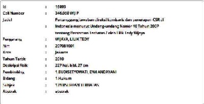 Wijaya, Lilik Tedy (2010) Pertanggung jawaban direksi komisaris dan penerapan CSR di Indonesia menurut Undang-undang Nomor 40 Tahun 2007 tentang Perseroan Terbatas. Masters thesis, Universitas Tarumanagara.