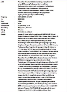 Kotyi, Julius Achmad (2010) Perubahan Hukum amdal dalam Undang-undang Nomor 32 tahun 2009 tentang Perlindungan dan pengelolaan lingkungan hidup dalam rangka pembangunan berkelanjutan 9studi perbandingan Amdal antara Undang-undang Lingkungan hidup yang lama dengan undang-undang Nomor 32 tahun 2009 tentang perlindungan dan pengelolaan lingkungan hidup). Skripsi thesis, Universitas Tarumanagara.
