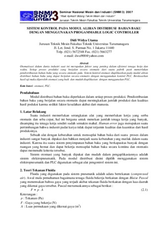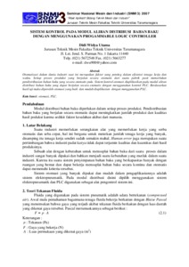 Widya Utama, Didi (2013) SISTEM KONTROL PADA MODUL ALIRAN DISTRIBUSI BAHAN BAKU DENGAN MENGGUNAKAN PROGAMMABLE LOGIC CONTROLLER. In: Seminar Nasional Mesin dan Industri 3, 11 Sept 2007, Jakarta.