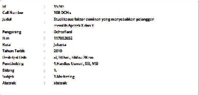 Ochtafiani, Ochtafiani (2010) Studi kasus faktor dominan yang menyebabkan pelanggan memilih Apotek X dan Y. Masters thesis, Universitas Tarumanagara.
