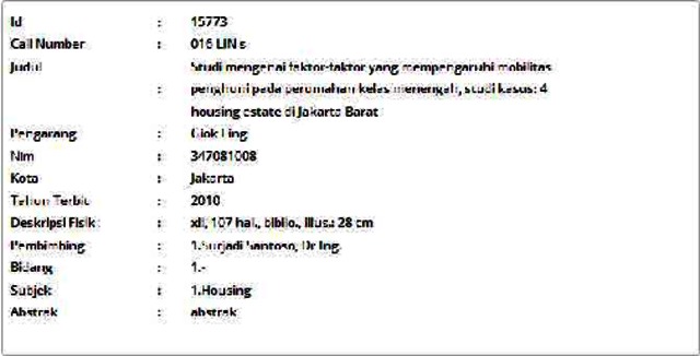 Ling, Giok (2010) Studi mengenai faktor-faktor yang mempengaruhi mobilitas penghuni pada perumahan kelas menengah, studi kasus: 4 housing estate di Jakarta Barat. Masters thesis, Universitas Tarumanagara.