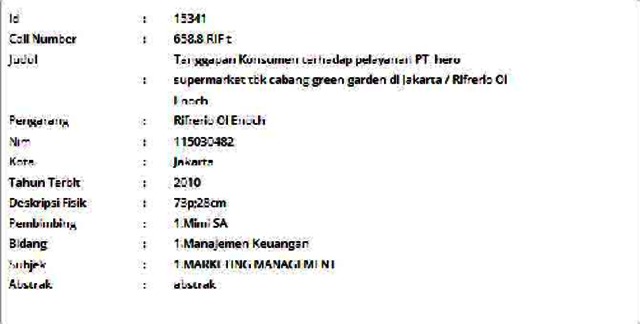 Enoch, Rifrerio Ol (2010) Tanggapan Konsumen terhadap pelayanan PT. hero supermarket tbk cabang green garden di Jakarta. Skripsi thesis, Universitas Tarumanagara.