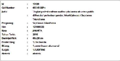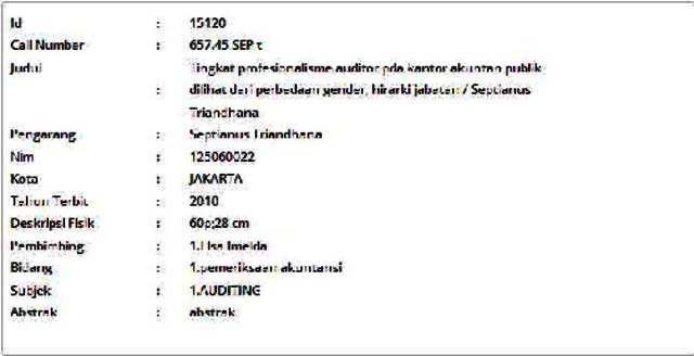 Triandhana, Septianus (2010) Tingkat profesionalisme auditor pda kantor akuntan publik dilihat dari perbedaan gender, hirarki jabatan. Skripsi thesis, Universitas Tarumanagara.