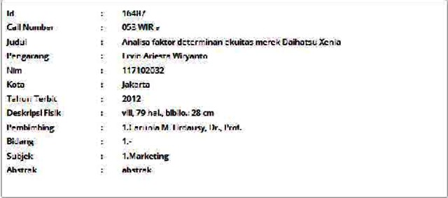 Wiryanto, Ervin Ariesta (2012) Analisa faktor determinan ekuitas merek Daihatsu Xenia. Masters thesis, Universitas Tarumanagara.
