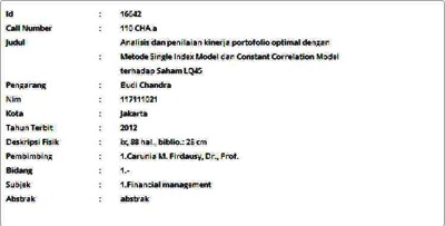 Chandra, Budi (2012) Analisis dan penilaian kinerja portofolio optimal dengan Metode Single Index Model dan Constant Correlation Model terhadap Saham LQ45. Masters thesis, Universitas Tarumanagara.