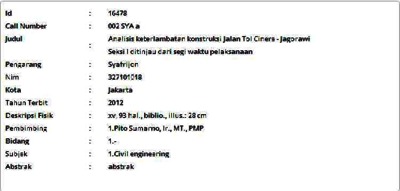 Syafrijon, Syafrijon (2012) Analisis keterlambatan konstruksi Jalan Tol Cinere - Jagorawi Seksi I ditinjau dari segi waktu pelaksanaan. Masters thesis, Universitas Tarumanagara.
