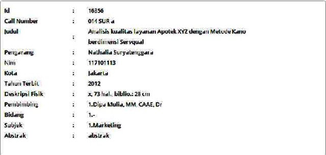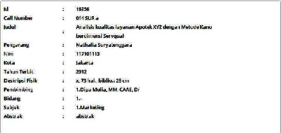Suryatenggara, Nathalia (2012) Analisis kualitas layanan Apotek XYZ dengan Metode Kano berdimensi Servqual. Masters thesis, Universitas Tarumanagara.