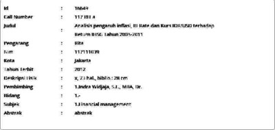 Rita, Rita (2012) Analisis pengaruh inflasi, BI Rate dan Kurs IDR/USD terhadap Return IHSG Tahun 2005-2011. Masters thesis, Universitas Tarumanagara.