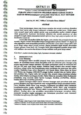 Fat, Joni (2010) Perancangan Sistem Prediksi Arah Gerak Harga Saham Berdasarkan Analisis Teknikal dan Metode Fuzzy Logic. Seminar Nasional Teknologi Komputer dan Telekomunikasi.
